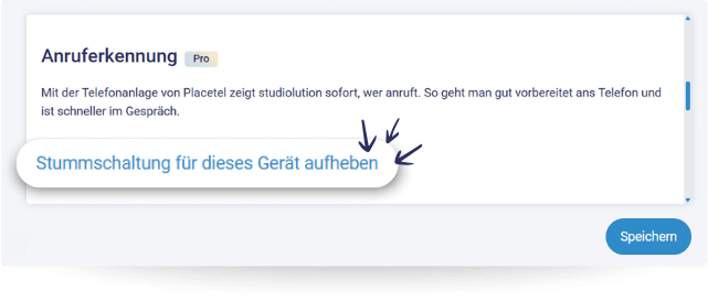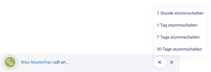 Natürlich könnt ihr die Anruferkennung auf stumm schalten und zwar immer pro Gerät. Das kann hilfreich sein, wenn man mal mit dem Handy parallel in studiolution ist, und nicht gestört werden möchte. Zur Auswahl stehen 1 Stunde, 1 Tag, 7 Tage oder 30 Tage für die Stummschaltung.