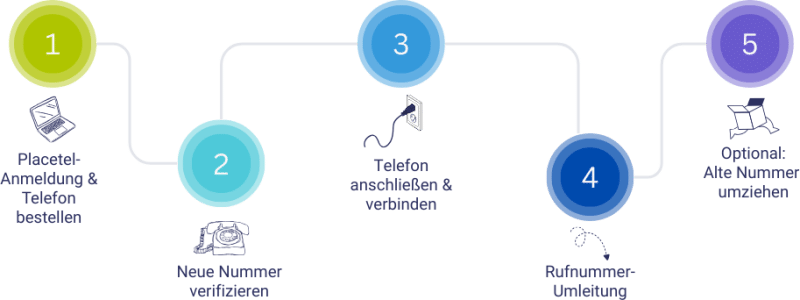 4) Rufnummerumleitung: Stellt bei eurem alten Anbieter eine Rufumleitung von eurer alten Nummer auf die Placetel-Nummer ein. Damit seid ihr weiterhin unter der bekannten Nummer erreichbar. 😉