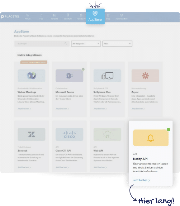 Öffnet den „AppStore“ und sucht nach „Notify API“.
