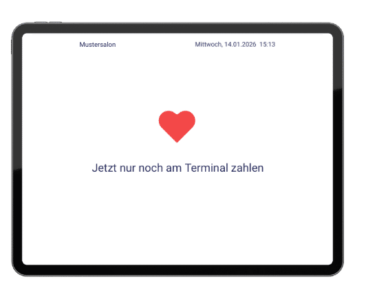 Für euer eigenes Kundendisplay braucht ihr ein separates Gerät, zum Beispiel ein Tablet (iOS/Android) und ein studiolution Pay Terminal. Dann kann’s auch schon losgehen: