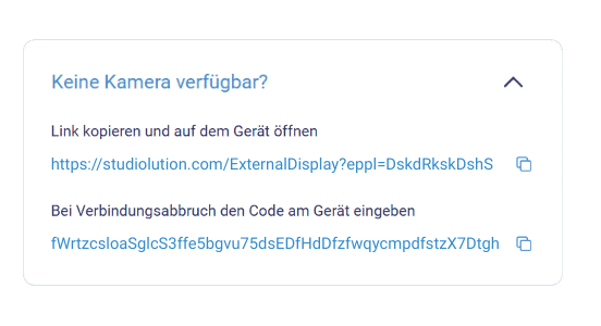 Die Kamera eures Tablets ist kaputt oder kann den QR-Code nicht scannen? Dann klickt ihr den blauen Text „Keine Kamera am Gerät“ an. Nun gibt es zwei Optionen: