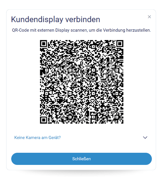 Ist die Verbindung einmal getrennt, könnt ihr zum Neuverbinden einfach wieder den QR-Code in der Kasse unter „Kundendisplay“ scannen.