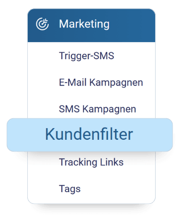 Ihr findet den Kundenfilter unter Marketing > Kundenfilter.