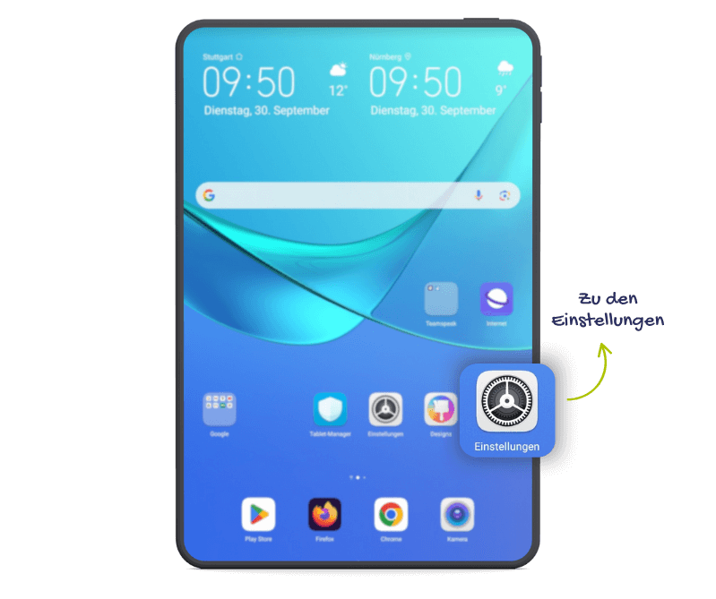 1. Öffnet die Einstellungen auf eurem Tablet.