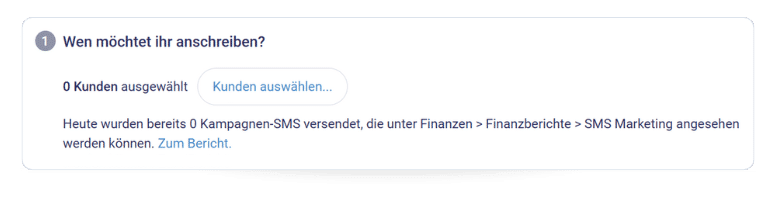PS: In „Finanzen“ > „Finanzberichte“ > „SMS Marketing“ habt ihr ein Überblick über alle versendete SMS. Die SMS Kampagnen werden entsprechend mit dem Typ „SMS Kampagne“ vermerkt.