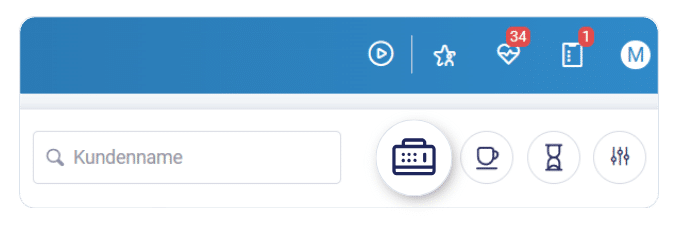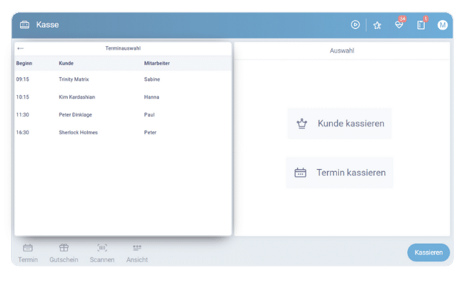 Im Terminbuch könnt ihr oben rechts auf das Kassen-Symbol klicken, um die Kassen zu öffnen.