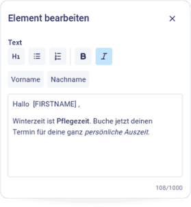 Tipp: Wenn in eurer Kundenkartei keine oder nur spaßige Namen stehen 😉, lasst die Platzhalter lieber weg und schreibt einfach „Hallo“.
